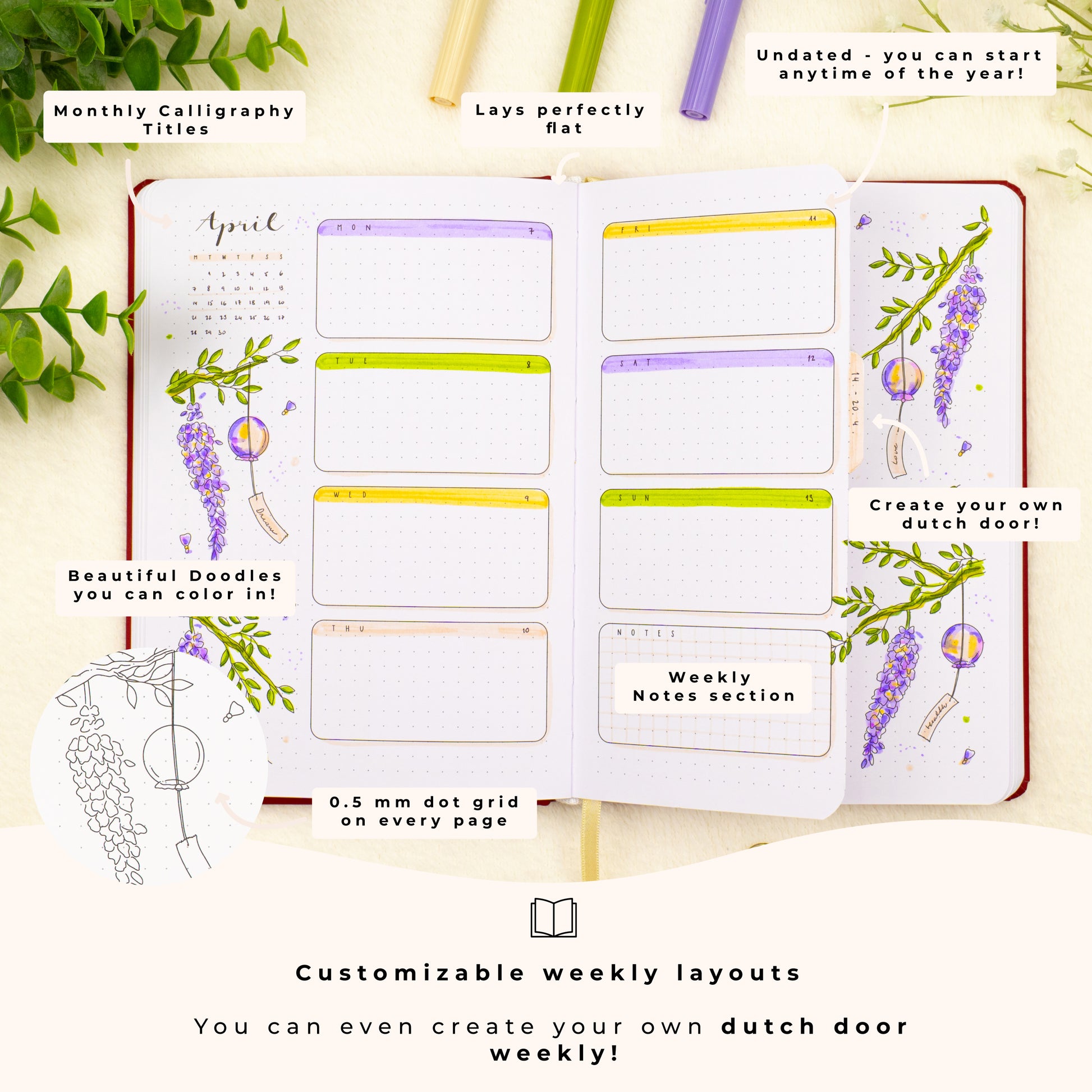 - 5 Weekly spreads with different layouts to try - you can even create your own dutch door spread!